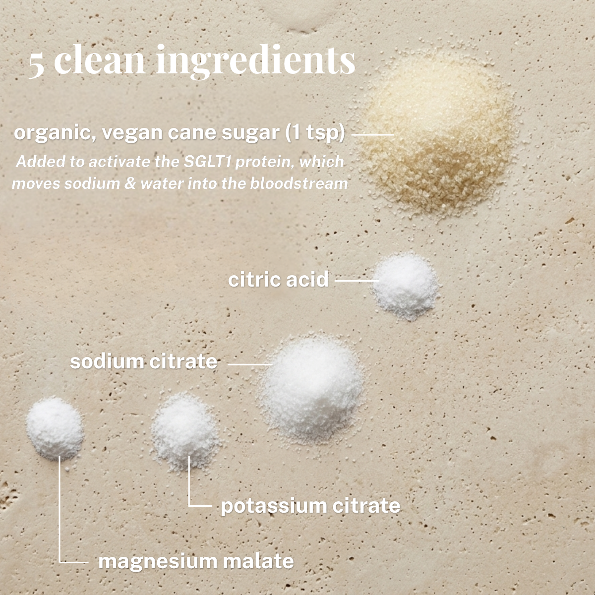 - 5 Science-Backed Ingredients: Sodium, potassium, and magnesium in their most absorbable forms; 1 teaspoon of vegan, organic cane sugar to activate your SGLT1 protein for optimal absorption
